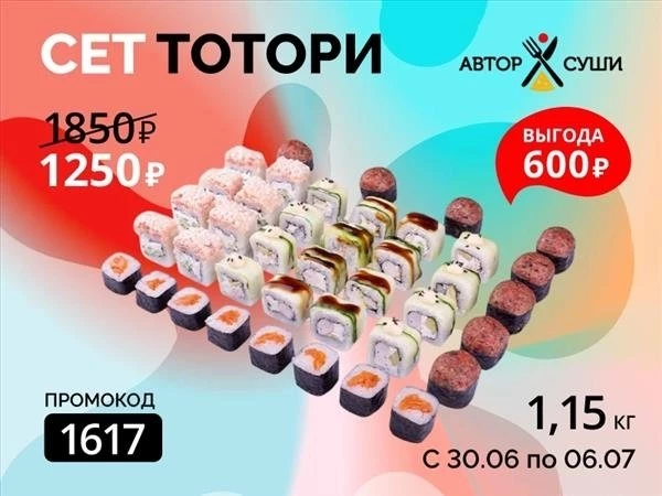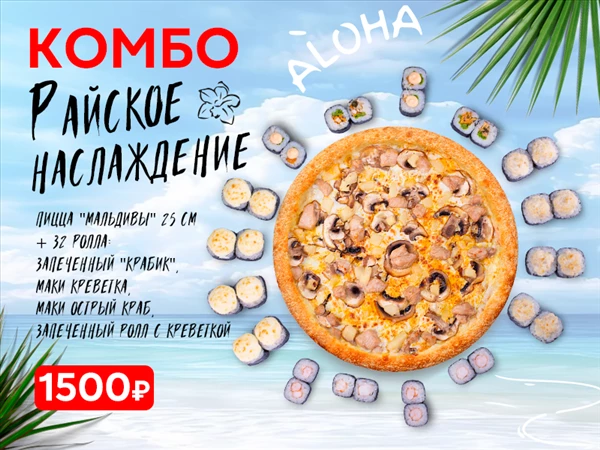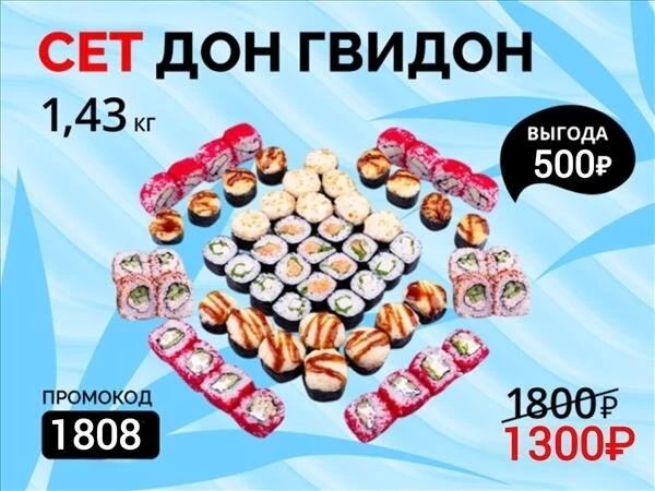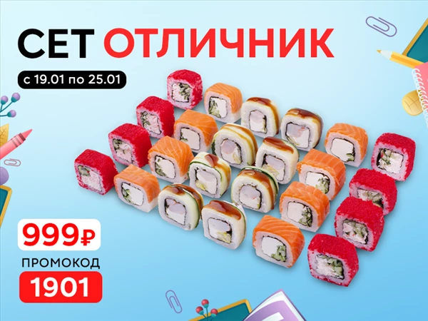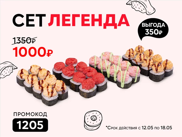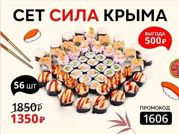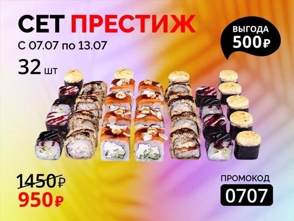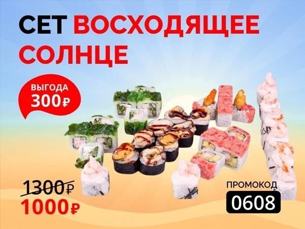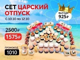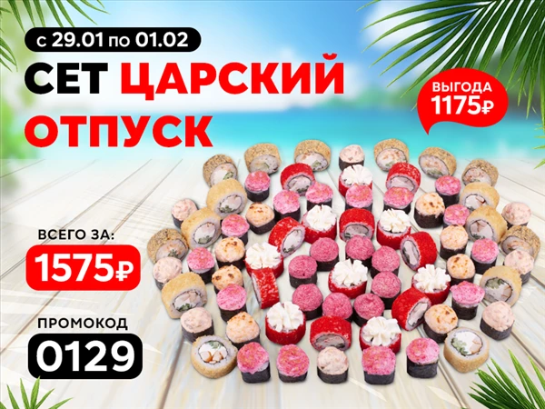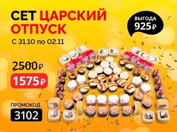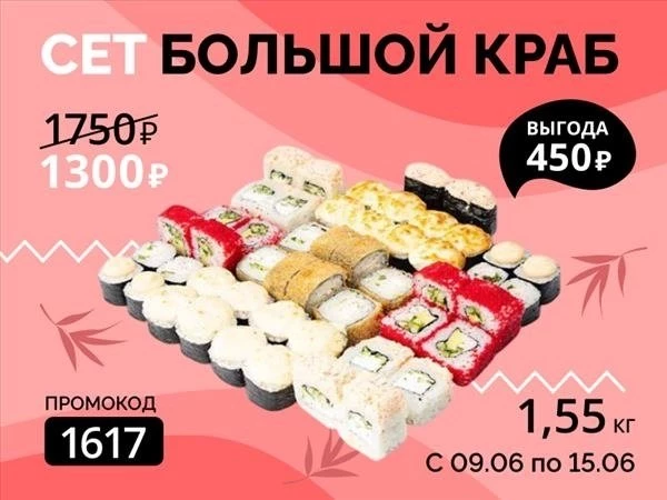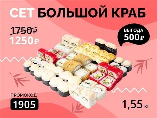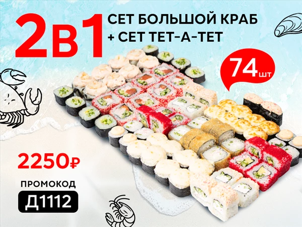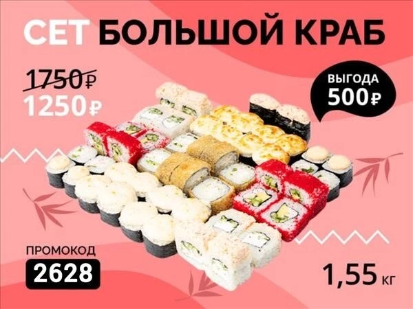 Промокод "3132" пицца "Мясной Микс" и сет "Большой Краб"