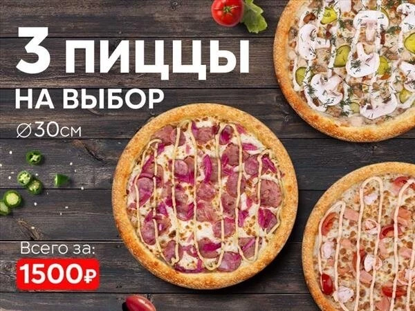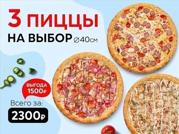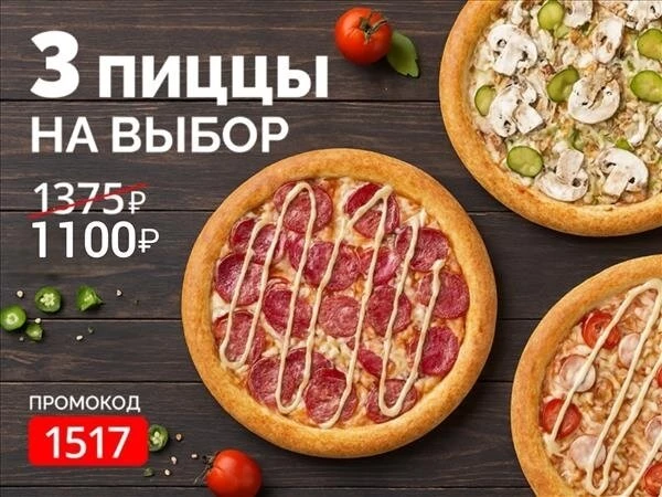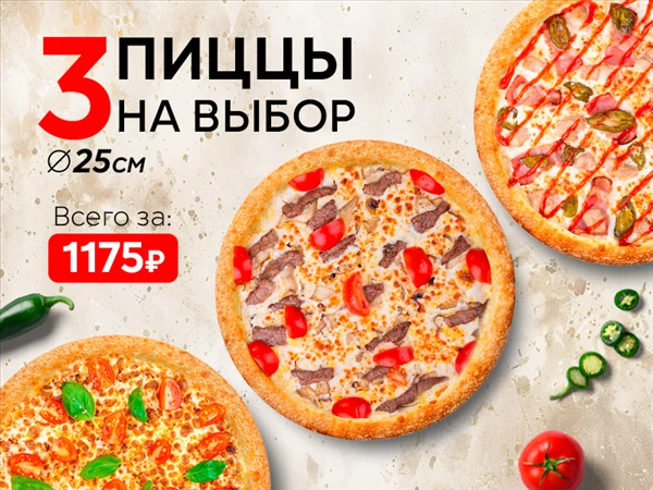 Промокод "343" Набор "Три пиццы 30 см" на выбор